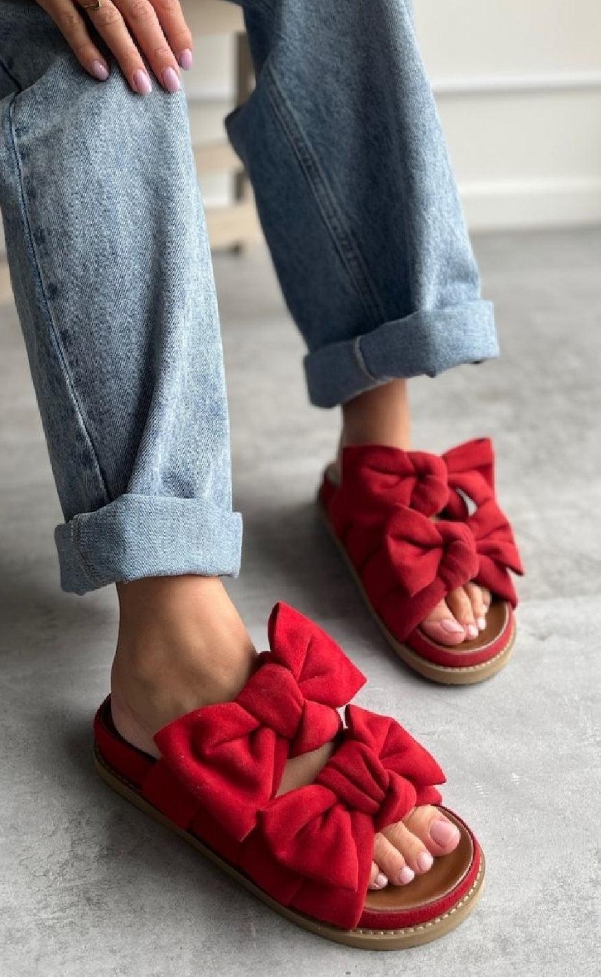 Sandaler fra Copenhagen Shoes Flotte slip on sandaler fra Copenhagen Shoes i rød. Disse sandaler kombinerer komfort med et stilrent design, der passer til de varme sommerdage. De har to store sløjfer på toppen. Sandalerne har nogle super fine detaljer, so