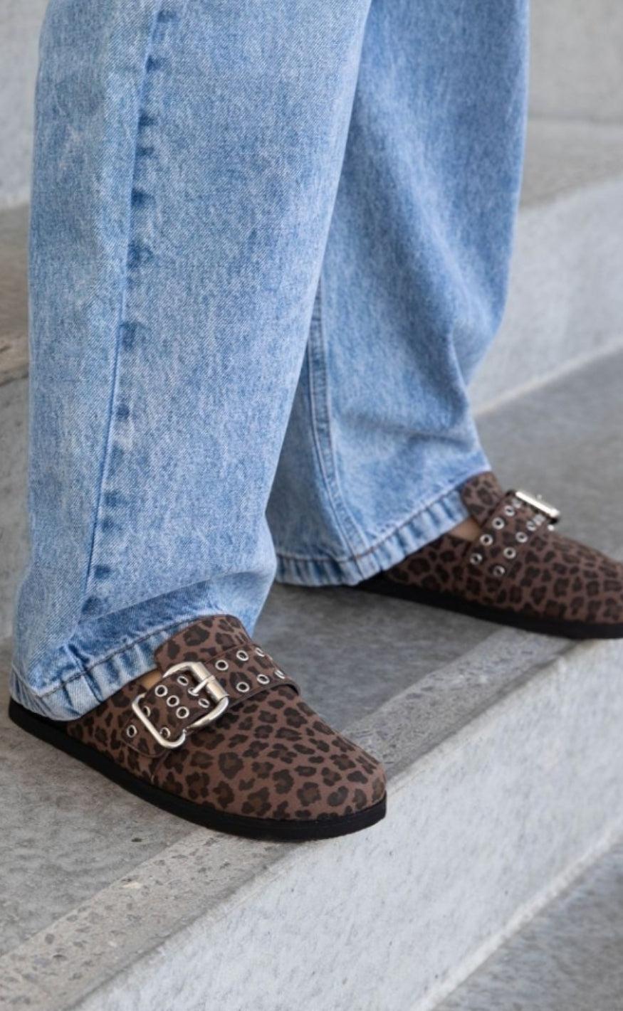 Sandaler fra Copenhagen Shoes Fine, lukkede sandaler fra Copenhagen Shoes i leopardprint. Sandalerne lukkes øverst med en fin rem.