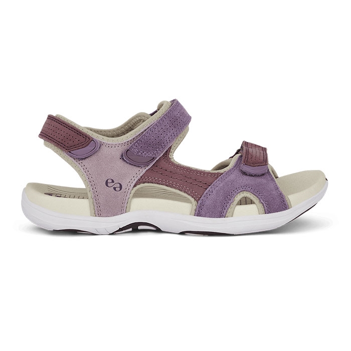 Komfortabel og stilfuld damesandal i friske farver med justerbar pasform, stødabsorberende sål og ruskind ydermateriale perfekt til sommerens udflugter.