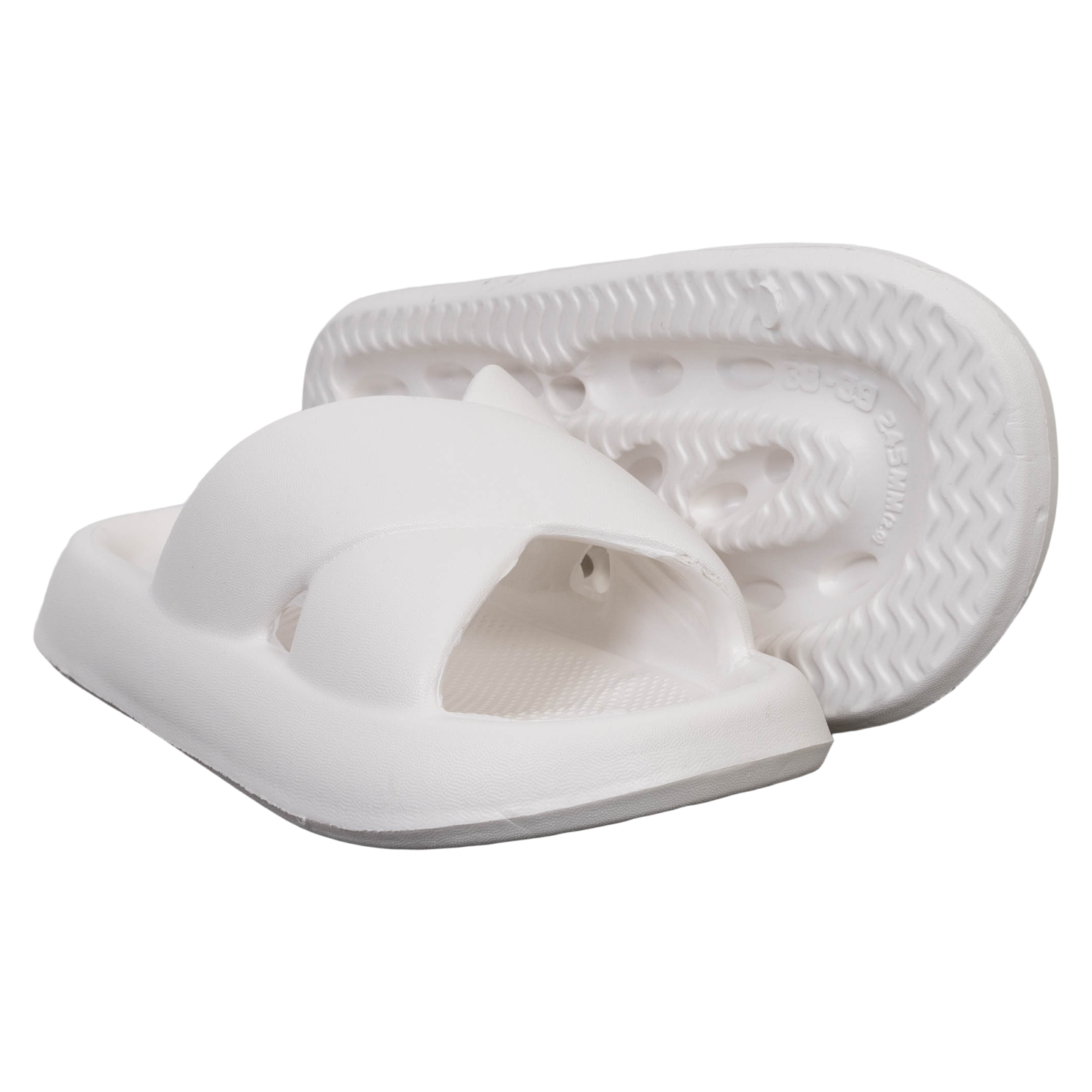 Vanting dame sandaler i ensfarvet hvid. Sandalernes bløde bund sikrer støtte og afslapning til fødderne. Sålen har et skridsikkert mønster, der giver godt fodfæste.