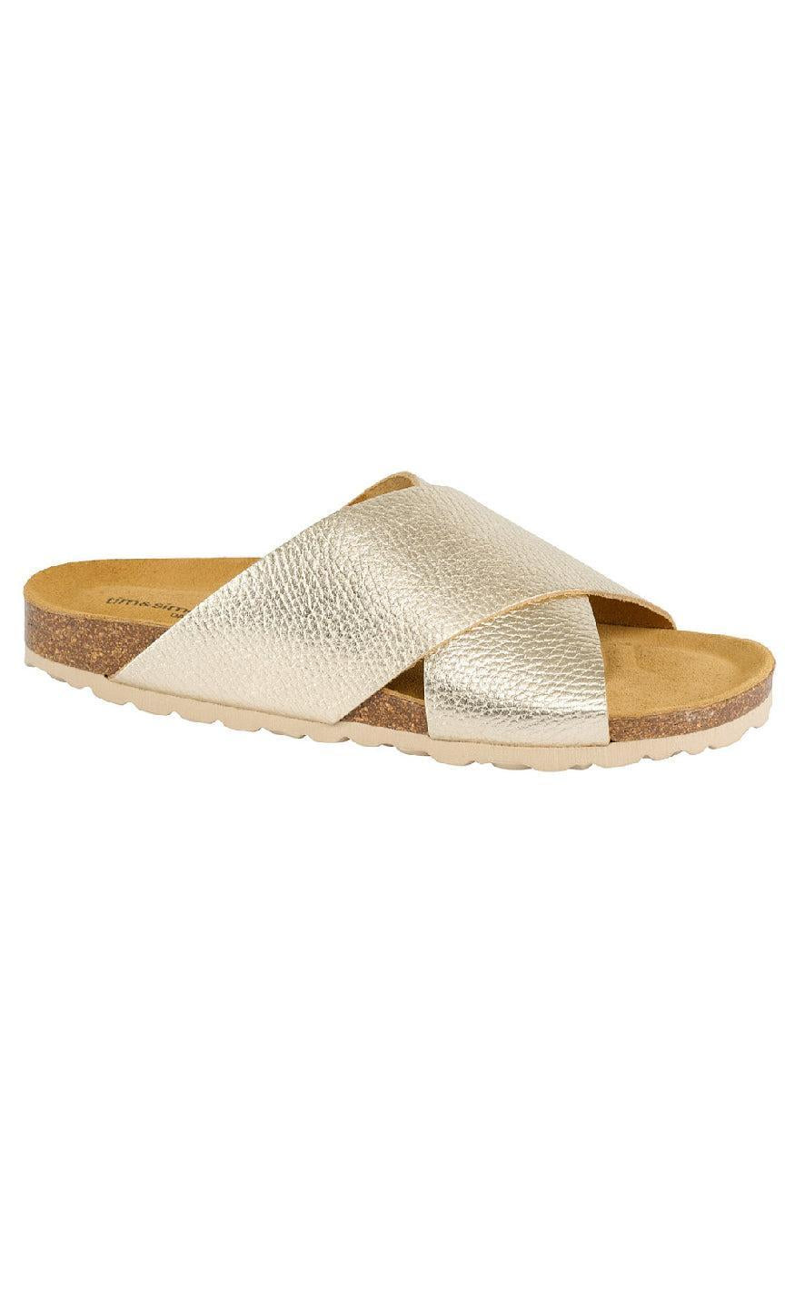 Sandaler Fra Tim Simonsen Flotte sandaler fra Tim Simonsen i guld. Sandalerne har et smuk design med remme over foden.