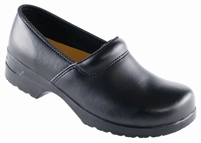 Bred fodformet Flex træsko med hælkappe, med polstret vrist og indlægssål i skind. Antistatisk Polyether-sål, varmebestandig op til 140 grader C. Græs- og gylleresistent, med Euro-Dan Shock Absorber. Vidde 13Fås i sortStr. 35 48