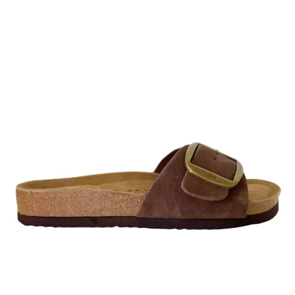 Art. No. 2463-86Morsø Skvulp Biosandal 2463-86 er super smarte slipper sandaler til damer, der forener enkelhed, komfort og stil. Sandalerne er designet med en bred sort rem i blødt ruskind, som prydes af en stor dekorativ spænde i antik messing, hvilket